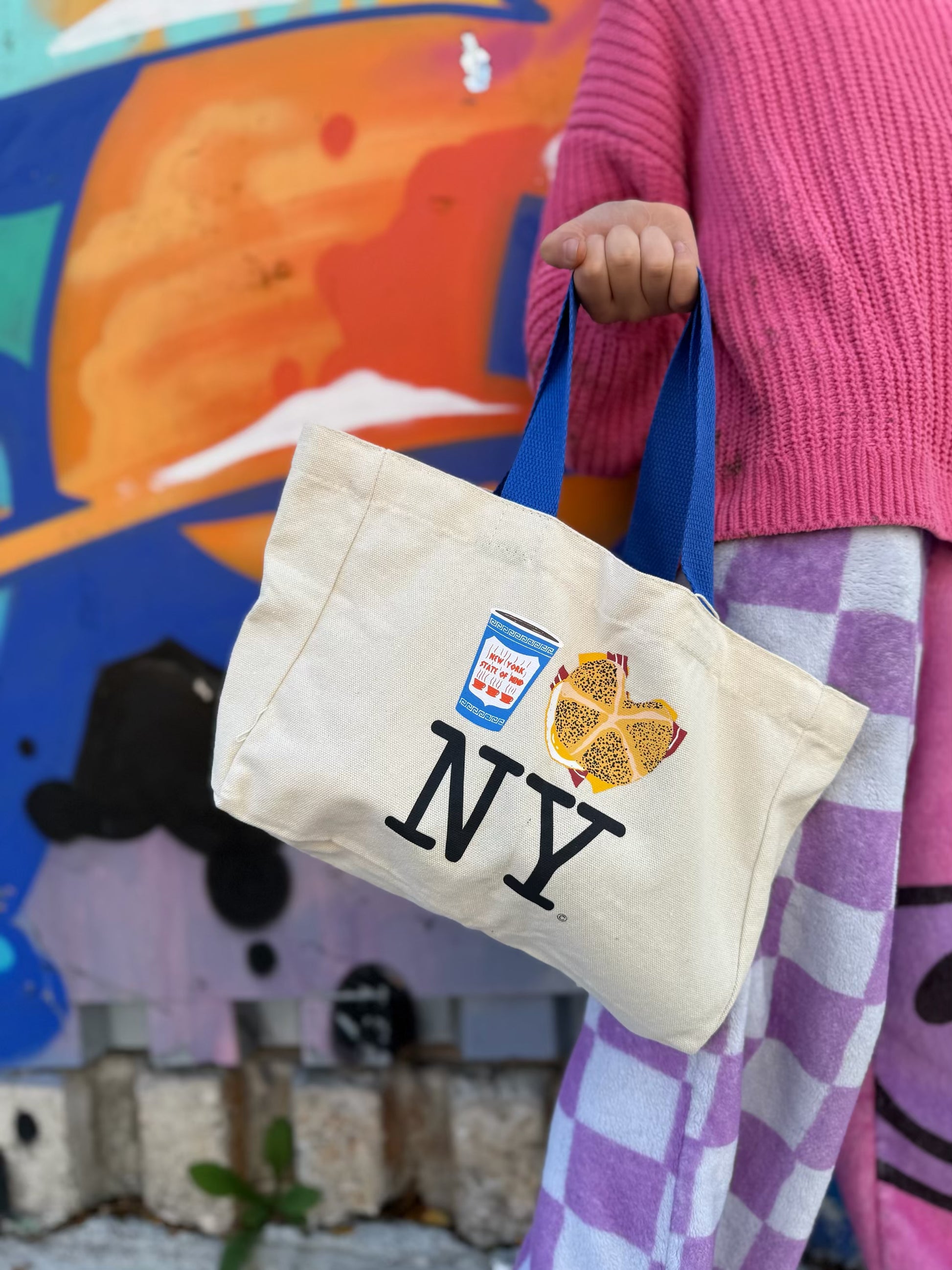 Our Mini Tote is made from 100% organic cotton, silk-printed with our signature NYC icons. It’s the perfect grab-and-go bag for kids, lunch runs, or a stroll to the corner bodega.