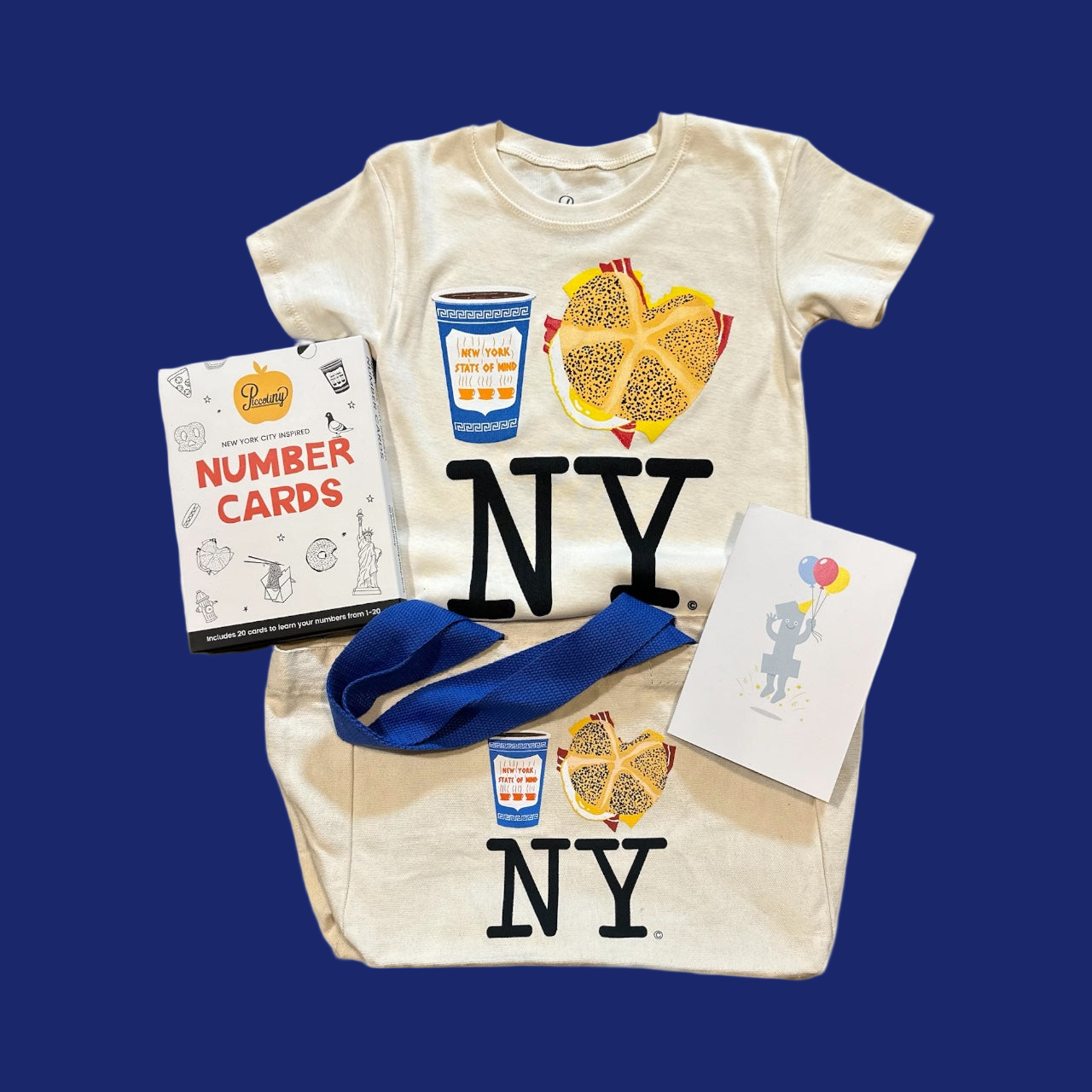 Inside the tote, you’ll find our NYC Number Flash Cards (1–20) — sturdy, beautifully illustrated cards that bring the city’s everyday icons to life — and a First Birthday Card, tucked inside and ready to gift.